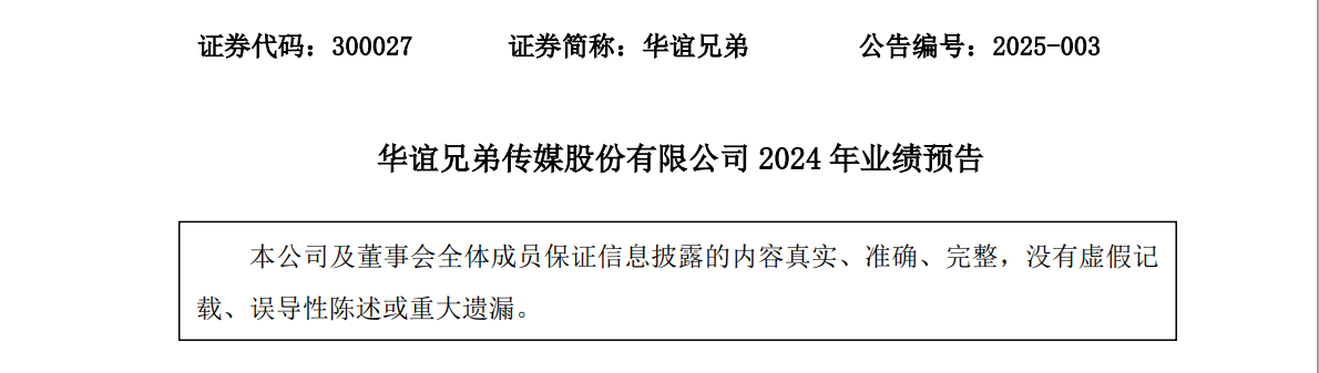 据央视新闻,2025年春节档强劲,票房预售连破纪录,但华谊兄弟(300027)昨晚的一则公告,却让其股东们感受到一丝苦涩和凉意:公司去年利润最高预亏近3亿元!